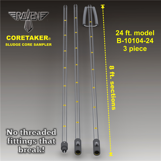 Raven Environmental Regular CORETAKER® 24 ft. Sludge Core Sampler, B-10104-24. (3 – 8ft Sections)